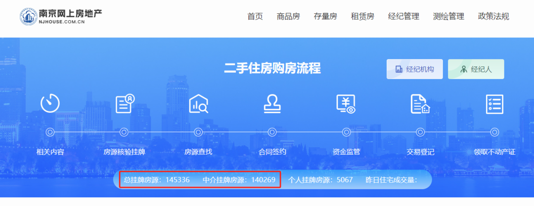 根据网上房地产的官方数据显示,截至到1月6日16时,南京全市二手房总挂牌数量为145336套,其中中介挂牌房源为140269套,个人挂牌房源为5067套。扬子晚报/紫牛新闻记者了解到,二手房市场的挂牌房源以中介挂牌为主,因此,目前140269套的中介挂牌量基本反映了南京二手房市场的库存水平。市场人士表示,这一数字在2023年“金九银十”期间曾突破18万套关口,至2024年年初仍有17万左右的待售房源。随着楼市政策逐渐宽松,市场进一步企稳,以及购房需求的持续释放,南京的二手房库存随之波动下滑,预计未来中介挂牌房源量将继续走低,跌破14万套“关口”指日可待。